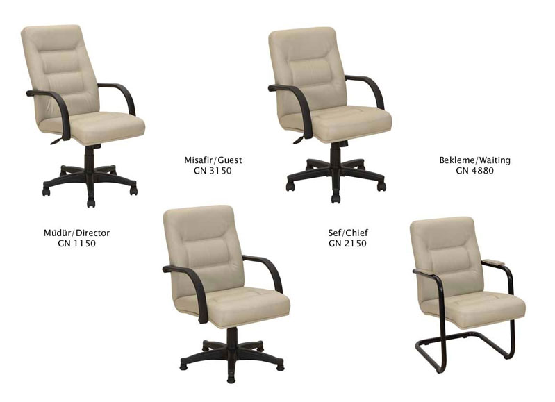 ![]() | Office Chair GN-Series Brief Description: Maximum Height: 118 cm // Seating Height: 53 cm Depth: 51 cm // Width: 54 cm Armlet Width: 60 cm // Weight: 18 kg Detailed Description: Double monoblock is used as the main carrier applying 32 density foam over it. The ergonomic shape is formed stiffening silicon fibre. The product is covered with artificial leather. armrest are made of high density polyurethane material. Legs are 640 mm diameter and made of aluminium. The wheels and daspot used at legs are ISO 9000 certificated. By using tilt mechanism, user can easily move toward and backward direction. There are three different kinds of legs and armrest as chrome, wood and plastic | |||||