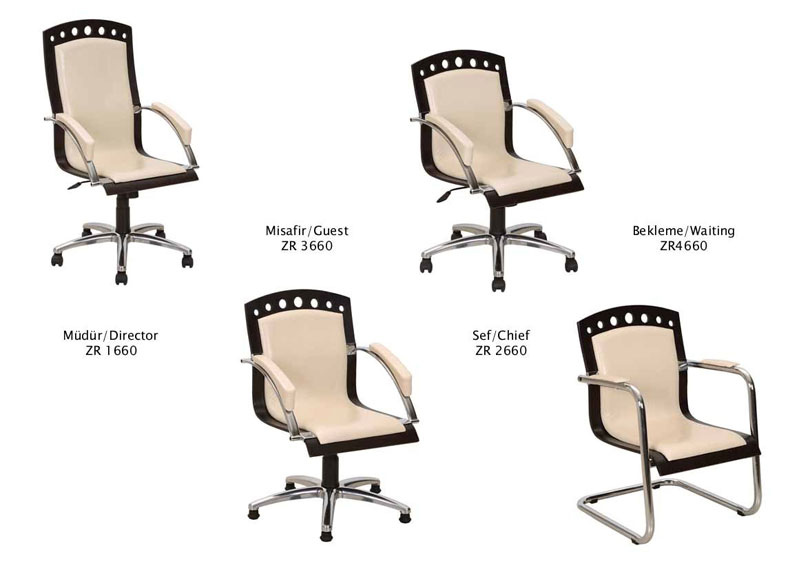 ![]() | Office Chair ZR Series Brief Description: Maximum Height: 117 cm // Seating Height: 53 cm Depth: 51 cm // Width: 53 cm Armlet Width: 60 cm // Weight: 19 kg Detailed Description: Double monoblock is used as the main carrier applying 32 density foam over it. The ergonomic shape is formed stiffening silicon fibre. The product is covered with artificial leather. Armrest are chrome and leather applied on massive arms. Legs are 700 mm diameter and made of aluminium. The wheels and daspot used at legs are ISO 9000 certificated. By using tilt mechanism, user can easily move toward and backward direction. There are three different kinds of legs and armrest as chrome, wood and plastic. | |||||