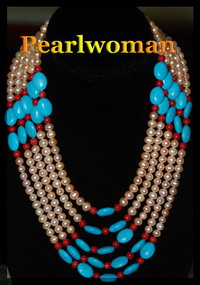 ![]() | Necklace 1 freshwater pearl, turquoise, coral | |||||