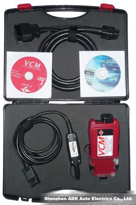 ![]() | Ford VCM IDS A109 The Vehicle Commnication Module (VCM) is a high performance, ruggedized, vehicle serial communications gateway. This device provides multiple vehicle serial communication interfaces to meet the requirements of all Ford Motor Company vehicles. The VCM unit is housed in a magnesium enclosure with a tough, protective, plastic cover for the PCMCIA expansion slot which can, for example, be used for wireless LAN cards or memory expansion. The VCM device contains five LED status indicators to provide the user with a visual mode of internal VCM, vehicle, and host device (e.g. NGS Classic's T-Handle, PC, Pocket PC/PDS, and Laptop/IDS) operation. The VCM also has detachable cables for connection to industry standard high-speed host interfaces as well as to the vehicle under test. The VCM (Version V57) includes both IDS (Integrated Diagnostic Software) and PDS (Portable Diagnostic Software) tools. Diagnostic coverage includes most 1996 ~ 2009 MY (produced 1995 ~ 2008) Ford, Lincoln/Mercury & Mazda vehicles. Application Overview Integrated Diagnostic Software (IDS) is the next generation diagnostic tool. IDS integrates WDS software modified to run on an off-the-shelf laptop with the Vehicle Communication Module (VCM) currently used in NGS+ and PDS, and a new Vehicle Measurement Module (VMM). Vehicle Diagnostic Connectors The VCM 16-pin DLC cable is used to connect the VCM to the vehicle. The VCM and VMM connect to the laptop through the Ethernet-USB Adapter Cable (H406/H416). Interface Devices The interface devices that are used with this application are: VCM Vehicle Communication Module This device provides all link based functionality including: Data logger, Self test, Service Functions, Module Configuration and Programming, etc. VMM Vehicle Measurement Module This device provides the following functionality: Oscilloscope, Digital Multi-Meter, Ignition System Test, Fuel System Test, and SGM. Note that the application will detect the interface device that is connected to the laptop. Indicator icons will appear at the bottom right-hand corner of the IDS screen when the VCM and/or VMM are connected. IDS VCM Accessories: Vehicle Communication Module (VCM) 16-Pin DLC Short Cable 16-Pin DLC Long Cable IDS 4m PC Ethernet-USB Host Cable DVD(Ford/Mazda) DVD(Land Rover/Jugar) | |||||