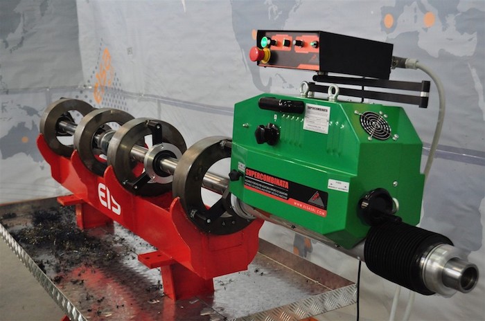 | Portable in line boring overlay welding SUPERCOMBINATA Portable Multifunctional In line boring / overlay welding / flange facing / drilling / tapping / threading machine tools The main sectors in which our machines find applications are: Shipyards & Repairers Oil & Gas Offshore Heavy Industrial Sectors Earthmoving Equipment Petrochemical Power Generation Mining Nuclear The set-up is very easy and only takes a few minutes. All of our machines have an unlimited longitudinal stroke. Very light and portable and very powerful for all your maintenance/repairs needings either directly on site or on your own workshop. with only one set-up and one machine you can do: In-line boring Internal and External Rotary welding (also for blind holes and combined with any type of wire welder) Drilling Tapping Facing bosses External machining Creating circlip grooves. Their outstanding and uncomparable abilities, make them an all round on-site servicing machine unit. •MULTIFUNCTIONAL •REDUCE DOWNTIME (MTBF/MTTR) •PORTABLE- (one unit, one setup and on-site in minutes) •COMPACT - (heavy duty light weight) •ROBUST - (heavy duty machining achieving desired tolerances) •AUTOMATED - (Electronic Control Panel for Feed & Rotation) Working Diameters With Standard Equipment IN-LINE BORING Starting from ø 42 mm to over ø 400 mm OVERLAY WELDING Internal from ø 45 mm to over ø 600 mm External- from ø 45 mm to over ø 600 mm Drilling from ø 10 mm to max ø 45 mm Tapping from ø 10 mm to max ø 45 mm with presetting for Tapping Size Accessory kits KIT 20 For in line boring starting from ø 25mm to ø 50 mm KIT 30 For in line boring starting from ø 35mm to ø 100 mm For facing bosses, creating circlip grooves, external machines. Upon request, we can supply: Personalized kits for specific machining or applications. | ||||||