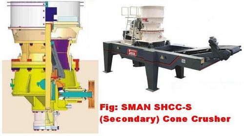 ![]() | Cone Crusher SHCC Secondary Gyratory Hydraulic Cone Crushers are the crushers that receives feed from the primary crusher, further reducing rock in size. SMAN SHCC-S (Secondary) Gyratory Hydraulic Cone Crushers are the ultimate solution for the secondary crushing to achieve uniform product size of hard rocks, ores and minerals. SMAN SHCC-S (Secondary) Gyratory Hydraulic Cone Crushers are equipped with the most advanced crushing techniques. The outer shells and the other body components are made out of the finest quality steel castings and its robust design helps withstand high crushing loads. The main shaft and eccentric system is made out high grade forged alloy steel and precision machined for accurate Gyro Crushing action resulting in maintenance free operation. SMAN SHCC-S (Secondary) Gyratory Hydraulic Cone Crushers are supplied inclusive of Hydro-Lube power pack, electrical control panel with motor and soft starter for instant installation. Features : | |||||