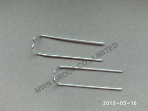 ![]() | Sod Staples MWN-ST FABRIC & SOD STAPLES We could manufacture the saples with 12, 11, 10, 9, and 8 gauge steel wire, in addition to 11 gauge galvanized and 8 gauge galvanized steel wire . Our staples can be formed with two different heads: square or round. The square top staples, referred to as a "sod staples"; The round top staples, referred to as the "irrigation staples". Application of the staples Sod Staples: to hold # in places sod ground cloth landscape fabrics plastic vapor barriers Irrigation Staples to hold # in places irrigation drip tubing soaker hoses We have the capability to manufacture staples ranging from 4" to 12" in length with a 1" or 2" wide head. The Sod Staples are packaged in 500 to 1000 piece bulk pack or in bags of 100 | |||||