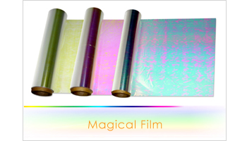 ![]() | Magical Film Magical Film, also called iridescent film or rainbow film which had been researched for years, is combined with America's technology to reach its thickness around 10-30 microns with 100-300 layers. For the reason of multi-time reflections and interference, light results in magical effects that we can observe its changable colors upon different directions, making a breakthrough in the optical field. Magical Film, certificated by the international environmental regulation--ROHS, is mostly used as a packaging or decoration materials, moreover, it can be laminated with paper sheets, plastics, clothes, fibers and leatherette to made as ribbon or sequin after processing. Based on Magical Film's unigue characteristic, it make the film a kaleidoscope color after processes of pattern printing and embossing. | |||||