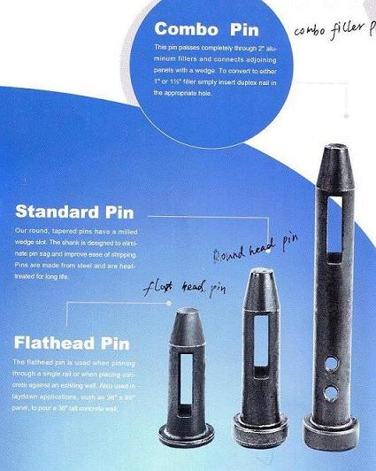 | standard pin/flat head pinbo pin standard pin 1. the material is steel 2. concrete formwork standard pin 3. lenth x width 72mm x 16mm 4. with good quality and competitive price. Our round, tapered pins have a milled wedge slot. the shank is designed to eliminate pin sag and improve ease of stripping. Pins are made from steel and are heat-treated for long life. 6bo pin 1 - the material is steel 2 - concrete formwork combo pin 3 - lenth x width: 120mm x 16mm 4 - with good quality and competitive price. This pin passes completely through 2" aluminum fillers and connects adjoining panels with a wedge. To convert to either 1" or 1 and half inch filler simply insert duplex nail in the appropriate hole. Combination with head : 1", 1 and half inch, 2" 7. flathead pin 1 - the material is steel 2 - concrete formwork flat head pin 3 - with good quality and competitive price. The flathead pin is used when pinning through a single rail or when placing concrete against an existing wall. Also used in lay down applications, such as 36" 96" panel, to pour a 36" tall concrete wall. | ||||||