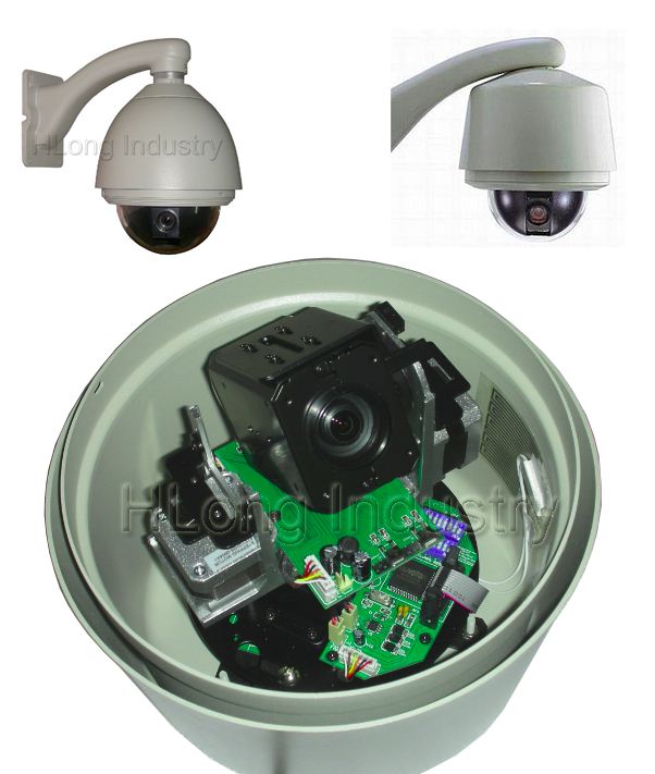 * 6 inch size high speed dome, aluminum double layer. * Fully metal casing and metal mechanism inside, 3 years guarantee. * Professional stepping motors ensuring stable operation. * Cooler & heater temperature control, suitable for all climate outdoor purpose. * 360° continous rotation, 180° (auto-flip) tilt, 280(400)/sec horizontal speed. * 128 preset position, 6 Cruising. * Supported various brand zoom cameras (SONY / Samsung / LG etc). * Supported PELCO-D/P protocols (basic).
