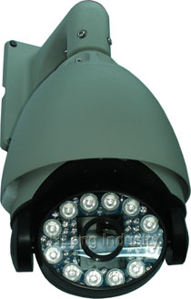* 6 inch size high speed dome, aluminum double layer, with temperature control, suitable for all climate outdoor purpose; * 12pcs Piranha Super-Flux IR LEDs + 36x8mm IR LEDs effective nigh vision range more than 100meters. * 0.5° ~ 200° / sec rotation speed; * 360° continous rotation, 180° (auto-flip) tilt; * 128 preset position, 8 Cruising; * Supported various brand zoom cameras (factory pre-configure required); * Supported PELCO-D/P protocols (basic).