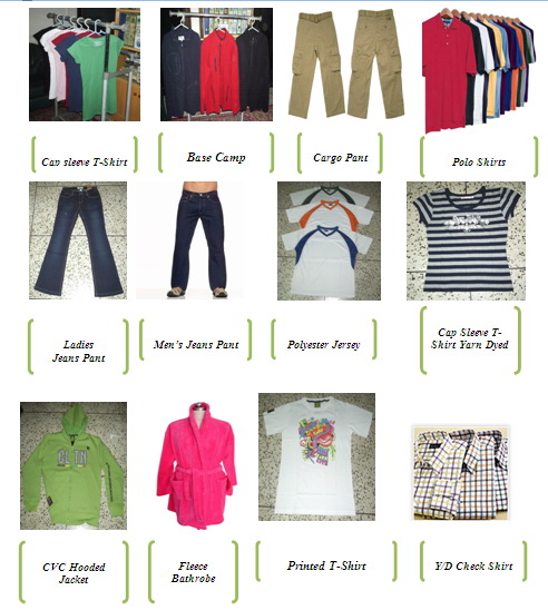 ![]() | Garments Woven and Knit garments, 100% Cotton or Cotton blend. | |||||
