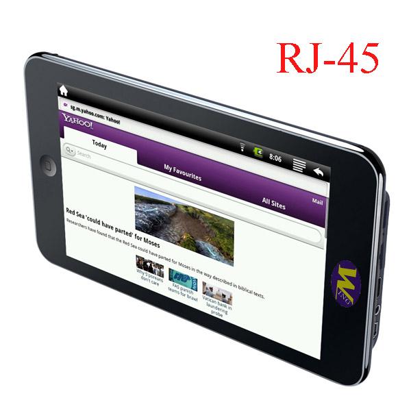 | MID MA0703 CPU: WM8650,High-performance 800MHZ CPU+400MHZ DSP OS: Google Android 2.2 Display: 7 inch (16:9) TFT Resistive Touch Screen(two point touch) Memory: DDR2 256M Flash 2GB(Standard) Resolution: 800*480 pixel, 0.3Mega pixel camera. Battery: Rechargeable li-polymer battery 1450mA . G-Sersor: 4-Dimensional gravity sensing Wireless: Support 802.11b/g WI-FI Cable Internet: 10/100M connector 3G: 3G(external) WCDMA CDMA2000 TD-CDMA: TD368 I/O port: 24pin USB switch interface*1, headphone*1,MIC*1,DC Jack*1, TF card reader | ||||||