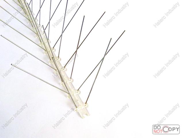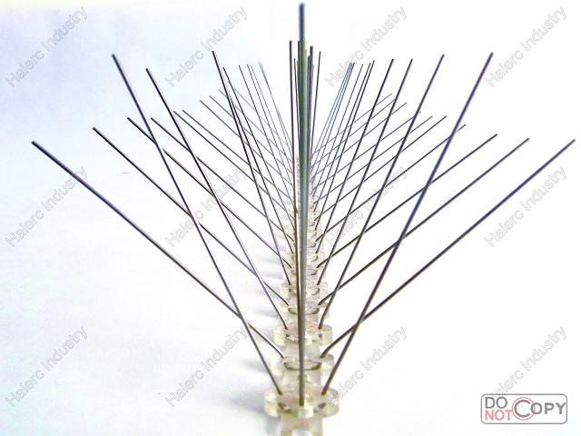 | anti bird spike HC1102-W4 HC1102-W4 S.S 304 bird control spike HC1102-W4 color;transparent qulity promise:5-8years 50cm base length with 40pcs SUS304 sticks Material:UV treatment PC base with 1.3mm SUS304stainles stick Spike lenght:110mm Protect area(greater than):Narrow: 110mm;&Widest: 190mm Packing 20pcs/CTN Measurement N.W/G.W MOQ/20GP QTY 56x40x21mm 18/19KG 25CTNS/682CTNS Advantage of our bird spikes: