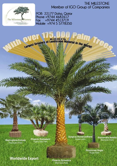 ![]() | The mile stone Nursery 2012 We are leading wholesale and retail Garden nursery for soft landscaping materials in Qatar market Mohamed Azmi Showroom Manager The Milestone Nursery Qatar POBox -22177 Doha, Qatar Phone +9744 4682617 Fax +9744 4513719 | |||||