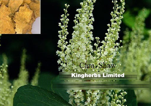 ![]() | Tongkat Ali Extract Powder 25: 1, 50: 1, 100: 1, 200: 1 CAS No.: 501-36-0 Tongkat Ali Extract Plant Origin: Eurycoma longifolia Part Used: Root Specifications: 25: 1, 50: 1, 100: 1, 200: 1 CAS No.: 501-36-0 Active Ingredients: Eurycomanone, Eurycomanol, Eurycomalactone; Various canthine-6-one alkaloids Functions: Tongkat Ali Extract is known as androgens, and are produced in the gonads. The hormone promotes secondary characteristics including the appearance of facial hair, enlargement of the larynx (producing a deeper voice), sexual desire and sexual behavior about 5 to 10% the amount produced in men. In women, this vital hormone also fans the flames of ardor, and increases sensitivity in the erogenous zones. promotes lipogenesis (burning of fat), increases the formation of red blood cells, and accelerates muscle growth. Tongkat Ali extract can help you return to the youth state in physiology. Exhibition 2015 1. Vitafoods Europe (Palexpo, Geneva, Switzerland), 5-7 May 2015, Booth No.: O3. 2. SupplySide West (Las Vegas, US) , 7-8 Oct. 2015, Booth No.: 2365. KINGHERBS LIMITED; Ms. Shaw | |||||