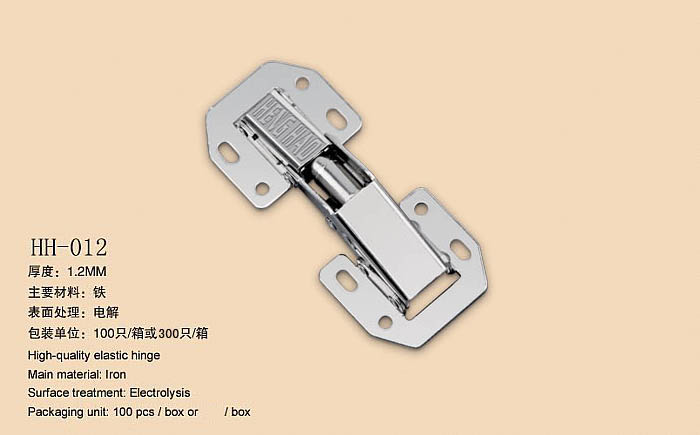 ![]() | Spring hinge /Bridge hinge /Frog hinge HH-012 HH- Product Name :Spring hinge /Bridge hinge /Frog hinge Material:Iron Surface treatment:Nickel finishing Usage:widely used to automatic Mahjong tables ,cabinet and other furniture opening angle:85~103 Thickness:1.0mm/1.2mm/1.5mm Packaging Details: 200 pcs or 300 package in bulk with a poly bag then pack into carton or as request from customer 1binet hinge,spring hinge. 2.One of our best selling hinge models,durable. 3. No hole boring or mounting plates required. | |||||