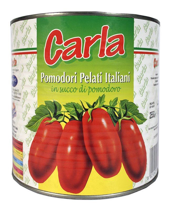 ![]() | 500 gr Whole peeled tomatoes in tomato juice canned in Italy Carla the Italian Brand of Whole Peeled Tomatoes come from San Marzano’s fields: they are the result of a perfect mixture of the sun and the land thanks to the presence of the Vesuvio, the famous volcano, which gives birth to a genuine and natural product. Expert agronomists take care of the cultivation of the tomatoes up to their maturation following strict quality control processes: they make sure to protect the ancient Southern Italian tradition made of healthy products, which belongs to our precious gastronomic culture and which are well known in Mediterranean Diet. Whole Peeled Plum Tomatoes are long type tomato with a delicious and delicate taste which are canned in a creamy and savoury sauce of natural tomato only. They are entirely made in Italy with 100% natural ingredients, without preservatives , rich of lycopene which is a powerful natural antioxidant. The fresh Italian Whole Plum Tomatoes matured on the sun of the South of Italy are collected with the technique of the manual harvest and they are properly worked by daily process that gives to the tomato the taste and the aroma of the traditional Mediterranean cuisine. | |||||