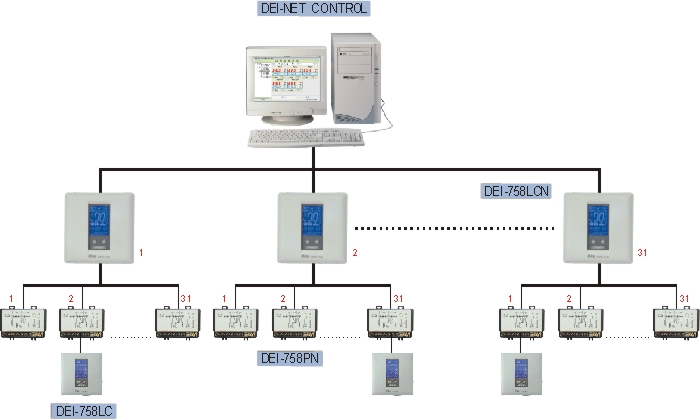 ![]() | A/C Microcomputer Temperature Control Network -Net Control Control your A/C systems from your network PC - Communication Interface : RS-485 - Distance : 2400 m - Console : 31 x 31 Fans/Network PC | |||||