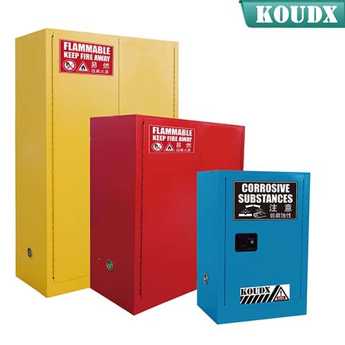 ![]() | KOUDX Flammable Cabinet All KOUDX cabinets are built to the highest quality specifications.The cabinets comply with current OSHA regulations and are designed in accordance with the standards of NFPA Code 30. Key Features: Over 1.2mm thick, fully welded,construction holds squareness for longer life, offering greater protection in a fire. Durable lead-free epoxy/polyester powder-coat finish provides excellent chemical resistance. Double wall construction with 1-1/2" (38mm) insulating air space for fire resistance. Fusible link assembly on self-closing models. Non-sparking 3-Point Self-latching Doors. 2"(53mm) leakproof sill to contain leaks. Full length, heavy-duty piano hinges. Two 2" vents with flash arrestors. Static grounding connection.