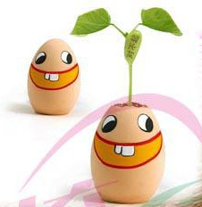 ![]() | Wish Bean with Egg SPI003 Just tap the top of egg slightly until break to a small hole ,water it ,after some days,you will see your wishes come up .How cute !. | |||||