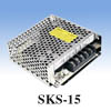 ![]() | switching power supply SKS-15 duct Description Features: 1) Low cost, high reliability; 2) 105oC output capacitor; 3) International AC input range; 4) High efficiency, low working temperature; 5) Soft-start circuit, limiting AC surge current; 6) Short circuit, overload tected; 7) Compact size, light weight; 8) 100% full load burn-in test; 9) Built in EMI filter, low ripple noise; 10) Weight:300g Specifications: 1) Input voltage: 85 - 132V AC/170 - 264V DC (selected by SW.) 2) Input frequency: 47 - 63Hz 3) Inrush current: cold start, 15A/115V, 30A/230V 4) Overload tection: 105 - 150% output fold-back limiting 5) Setup, rise, hold up times: 200ms, 100ms, 30ms 6) Withstand voltage: a) I/P-O/P: 1.5kV (1min.) b) I/P-FG: 1.5kV (1min.) 7) Working temp.: 0 - 50oC100%, -10oC80%, 60oC60% 8) Safety standard: design refers to UL 1012 requirements 9) EMC standard: design refers to FCC part 15J 10) Connection: 5P / 9.5mm pitch terminal block Packing: 45pcs/ctn G.W.: 15.3kg Volume: 0.9cuft | |||||