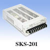 ![]() | switching power supply SKS-201 duct Description Features: 1) Low cost, high reliability 2) Cooling fan on/off automatically 3) International AC input range 4) High efficiency, low working temperature 5) Soft-start circuit, limiting AC surge current 6) Short circuit, overload, over voltage, over temp. tected 7) Compact size, light weight 8) 100% full load burn-in test 9) Built in EMI filter, low ripple noise 10) 105oC output capacitor 11) Weight: 900g Specifications: 1) Input voltage: 90 - 132V AC, 180 - 264VAC (selected by SW.) 2) Input frequency: 47 - 63Hz 3) Inrush current: cold start, 25A / 115V, 50A / 230V 4) Overload tection: 105 - 135% output foldback limiting 5) Setup, rise, hold up time: 200ms, 50ms, 20ms 6) Withstand voltage: a) I/P-O/P: 1.5kV (1min.) b) I/P-FG: 1.5kV (1min.) 7) Working temp: -10 ~ 50oC 8) Safety standard: design refers to UL 1950 requirement 9) EMC standard: design refers to FCC 15 J class B 10) Connection: 9P / 9.5mm pitch terminal block Packing: 12pcs/ctn G.W.: 12.0kg Volume: 1.0cuft | |||||