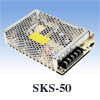 ![]() | switching power supply SKS-50 duct Description Features: 1) Low cost, high reliability 2) 105oC output capacitor 3) International AC input range 4) High efficiency, low working temperature 5) Soft-start circuit, limiting AC surge current 6) Short circuit, overload tected 7) Compact size, light weight 8) 100% full load burn-in test 9) Built in EMI filter, low ripple noise 10) Weight: 500g Specifications: 1) Input voltage: 85 - 132V AC; 170 - 264VDC (selected by SW.) 2) Input frequency: 47 - 63Hz 3) Inrush current: cold start, 15A / 115V, 30A / 230V 4) Overload tection: 105 - 150% output fold-back limiting 5) Setup, rise, hold up time: 200ms, 100ms, 20ms 6) Withstand voltage: a) I/P-O/P: 1.5kV (1min.) b) I/P-FG: 1.5kV (1min.) 7) Working temp: 0 - 50oC100%, -10oC80%, 60oC60% 8) Safety standard: design refers to UL1012 requirement 9) Connection: 5P / 9.5mm pitch terminal block Packing: 30pcs/ctn G.W.: 16.0kg Volume: 1.0cuft | |||||
