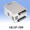 ![]() | switching power supply SKSP-500 duct Description Features: 1)Low cost, high reliability 2)Cooling fan on/off automatically 3)Built in remote contral 4)International AC input range 5)High efficiency, low working temperature 6)Soft-start circuit, limiting AC surge current 7)Short circuit, overload, over voltage, over temp. tected 8)Compact size, light weight 9)100% full load burn-in test 10)105oC output capacitor 11)Built in EMI filter, low ripple noise 12)Built in PFC circuit 13)Weight: 1.8kg Specifications: 1) Input voltage: 88 - 264V AC 2) Input current / frequency: 7A / 115V, 3.5A / 230V; 47 - 63Hz 3) Inrush current: 15A / 115V, 30A / 230V 4) Overload tection: 105 - 135% output constant limiting 5) Over voltage tection: 115 - 140% of output voltage 6) Setup, rise, hold up time: 230V AC:1.5s, 50ms, 20ms 7) Withstand voltage: a) I/P-O/P: 3kV (1min.) b) I/P-FG: 1.5kV (1min.) 8) Working temp.: 0 - 40oC100%, -10oC80%, 50 oC60% 9) Safety standard: UL 1950, TUV EN60950 10) EMC standard: EN55022 class B; EN61000-4-2, 3, 4, 5, 6, 8, 11; EN61000-3-2, 3 11) Connection: 15P / 9.5mm pitch terminal block Packing: 8pcs/ctn G.W.: 14.0kg Volume: 0.9cuft | |||||