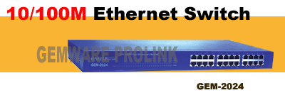 ![]() | 24Port Ethernet Switch Hub GEM-2024 Price Terms: FOB Shenzhen Origin: China Brand Name: GEMWARE PROLINK Payment Terms: T/T, L/C Supply Ability: 200,000pcs/year Product Description: GEM-2024 24-port 10/100Mbps Ethernet Switch is designed workgroup users. Rack-mount size metal case design combined with a safety certified internal power supply make the Switch the most robust product which is very cost-effective for less than 16 users environment. The plug-and-play and auto-negotiation capabilities allow the Switch to auto-detect its link partner (Ethernet adapter, for example) with the best speed. Each port provides full bandwidth (Maximum with 200Mbps in full duplex mode) without traditional hub's collision phenomenon downgrading the performance. An uplink (cascade) port is provided to link to another Switch for more ports expansion. Easy read LED indicators are supported for cable installation and normal operation diagnostics. The Switch can be used on desktop and rack-mount. Product Features : Complies with IEEE 802.3/802.3u Ethernet standards 24 10/100Mbps UTP/STP ports Full and half duplex support ˇIEEE802.3x flow control support ˇAutomatic source address learning ˇPlug and play Easy read LED indicators for installation and operation diagnostics Outline and Mounting:440(mm)x208(mm)x44 [mm],reference dimensions only Packing materails: Packing box: White clay coated cardboard, reference thickness [2.2mm] nominal, 562x307x93(mm), or make to order according to customer request. | |||||